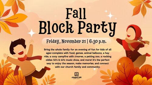 Bring the whole family for an evening of fun for kids of all ages—complete with food, games, animal balloons, a hay ride, a cozy campfire with s’mores, a petting zoo, a rocking oldies 50’s & 60’s music show, and more! It’s the perfect way to enjoy the season, make memories, and connect with our church family and community.